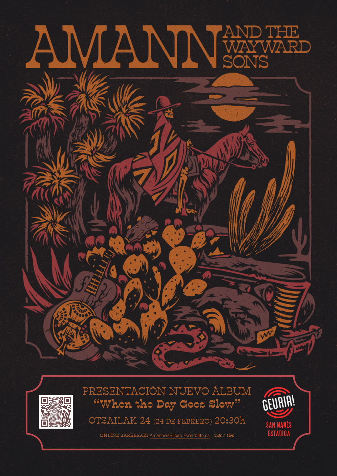 La banda liderada por Pablo Amann, hará una parada obligatoria de su gira estatal e internacional de presentación de su cuarto album de estudio, WHEN THE DAY GOES SLOW, en GEURIA, para presentar en el único concierto de la gira en casa, su último trabajo por el que ya han cosechado elogiosas críticas dentro y fuera de nuestras fronteras.